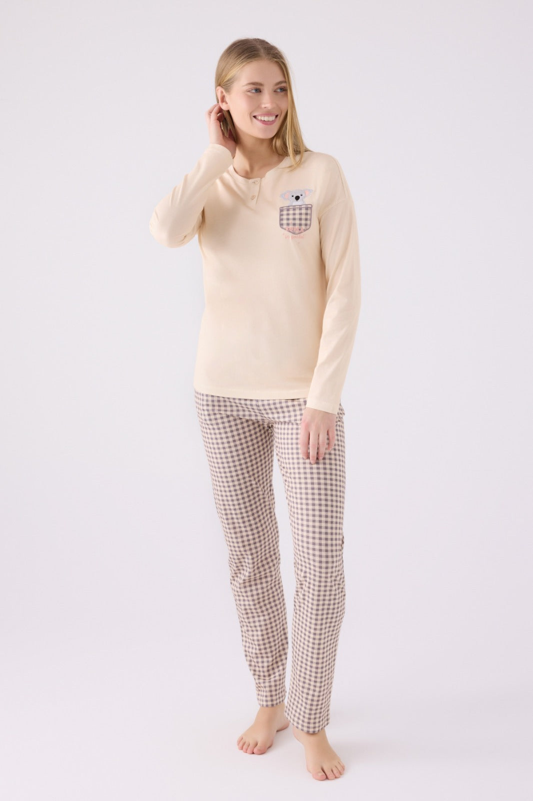 Chill out in this sweet pajama set featuring a soft top and fun check print pants. Comfy + cute!